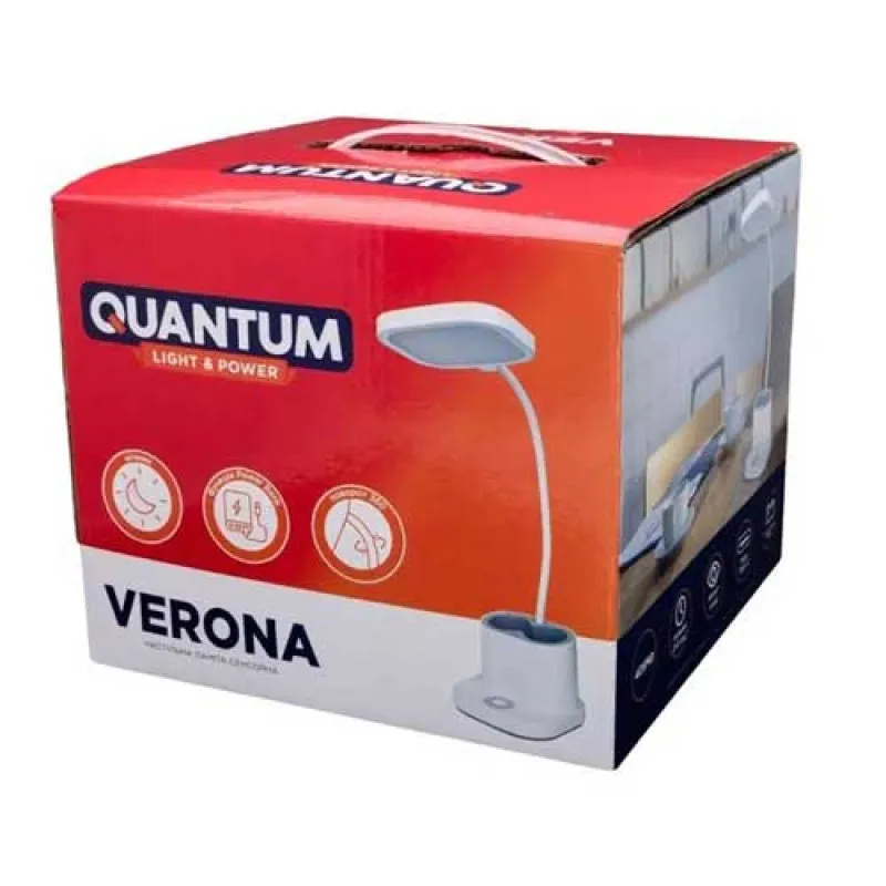 Настільна сенсорна LED лампа Quantum VERONA поєднує стильний дизайн, зручність використання та інноваційні функції. Лампа оснащена вбудованими світлодіодами потужністю 3,5 Вт, які створюють яскравість до 450 Лм, а три режими освітлення дозволяють адаптувати її до ваших потреб. Нейтральне біле світло з температурою 4500 К ідеально підходить для роботи, читання чи відпочинку. Дізнайтеся більше про настільні лампи у нашому каталозі.
