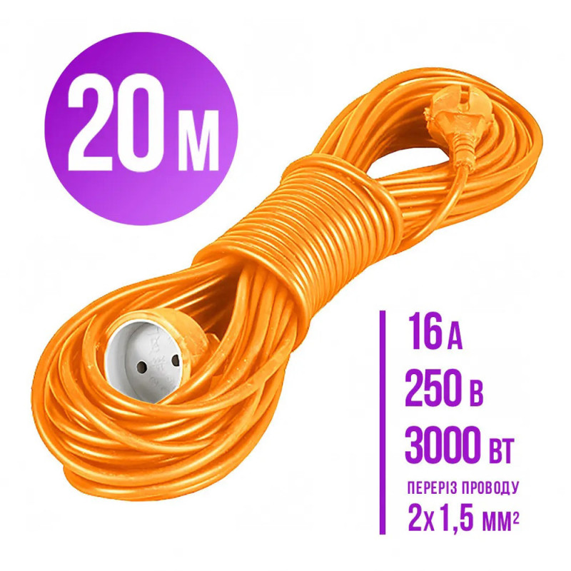 Подовжувач ПВС Папа-Мама 2*1,5 мм2 20 метрів Економ