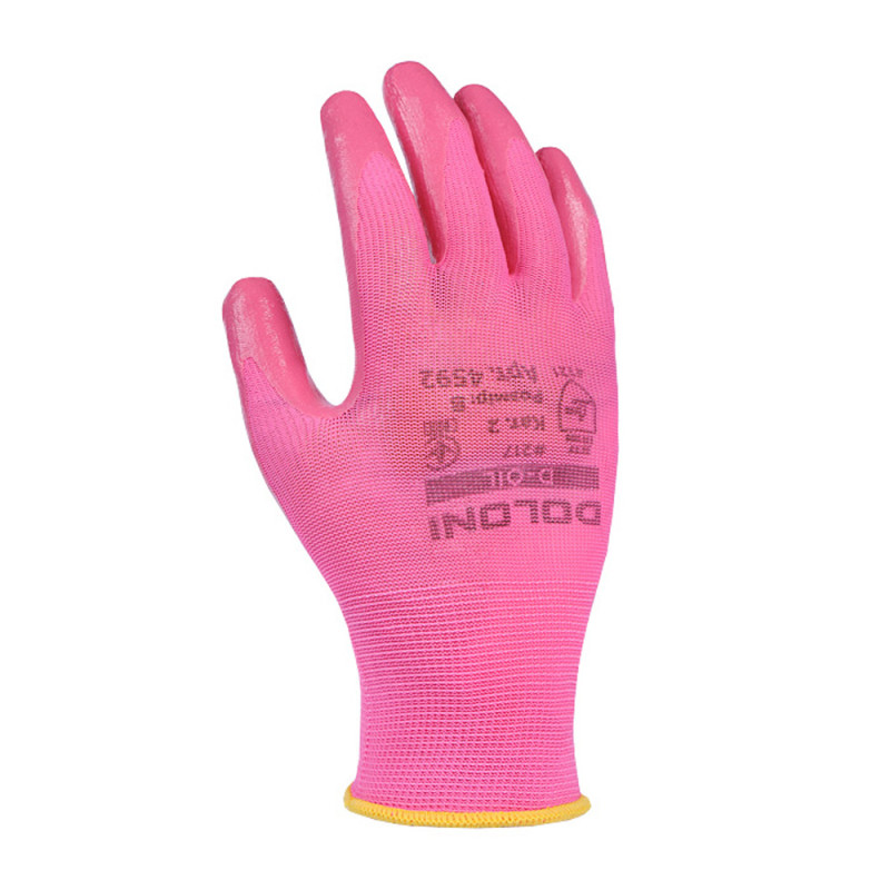 Робочі рукавички DOLONI 4592 D-OIL з нітриловою обливою (код товару: 4656) призначені для роботи в умовах контакту з нафтопродуктами, мастилами та технічними рідинами. Поліестерова основа забезпечує зносостійкість, еластичність і комфорт при тривалому використанні. Часткове покриття дозволяє зберігати точність рухів і контроль при виконанні робіт.