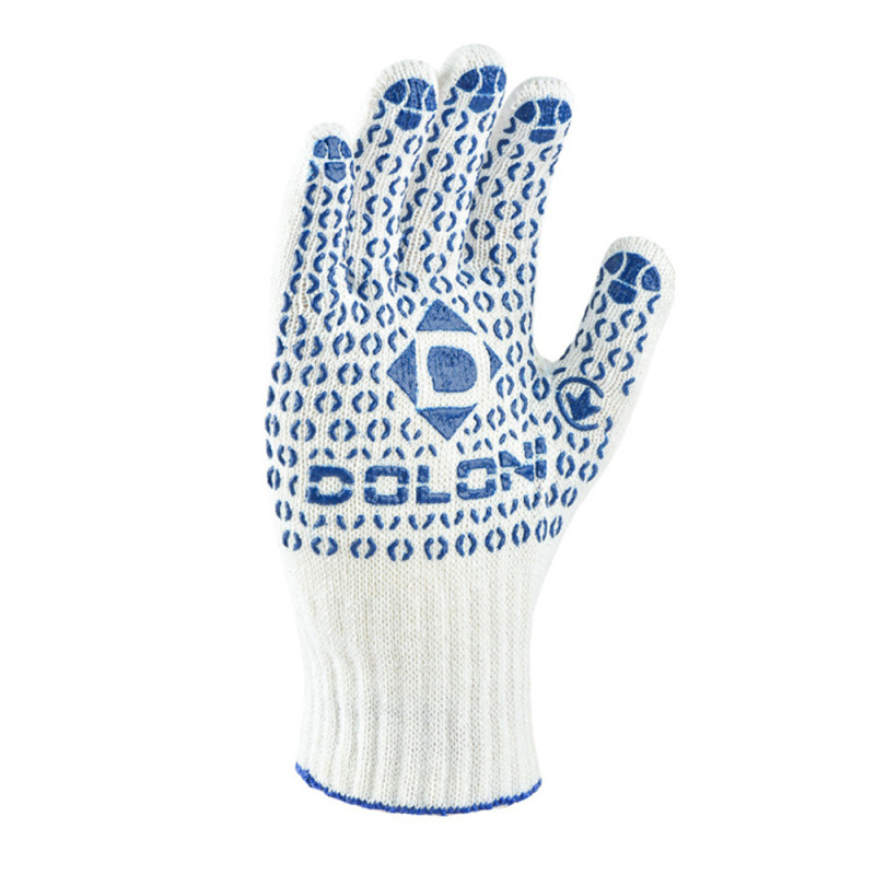 Робочі рукавички DOLONI 520 ДКГ із точковим ПВХ покриттям (код товару: 123) розроблені для інтенсивного використання під час загальновиробничих, складських та монтажних робіт. Виготовлені з комбінованого матеріалу (ХБ 70%, ПЕ 30%), вони поєднують натуральну повітропроникність із підвищеною міцністю. Завдяки 4 ниткам та 10 класу в’язання рукавички мають оптимальну щільність, що забезпечує баланс між захистом і зручністю.