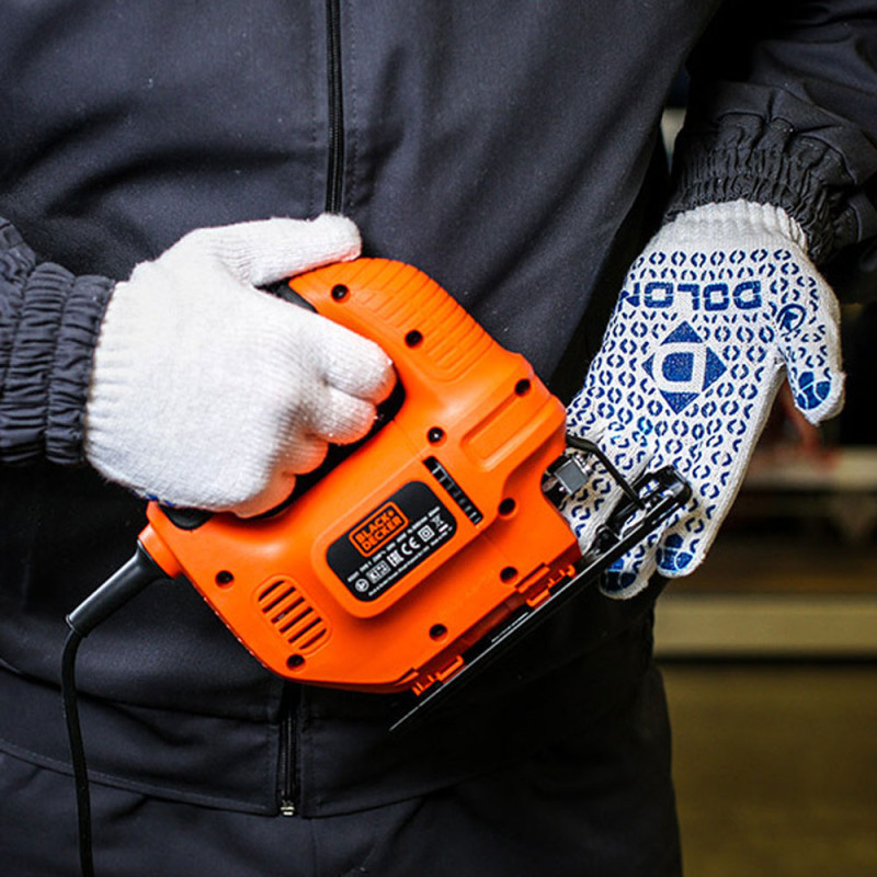 Точкове ПВХ покриття підвищує коефіцієнт тертя, забезпечуючи надійне утримання інструменту та матеріалів навіть при тривалій роботі. Рукавички ефективно захищають руки від ОПЗ та МВ, зменшуючи ризик механічних пошкоджень і забруднення. В’язаний манжет щільно фіксує рукавичку на зап’ясті, запобігаючи сповзанню. Вага пари 55 г робить їх зручними для тривалого використання без перевтоми.