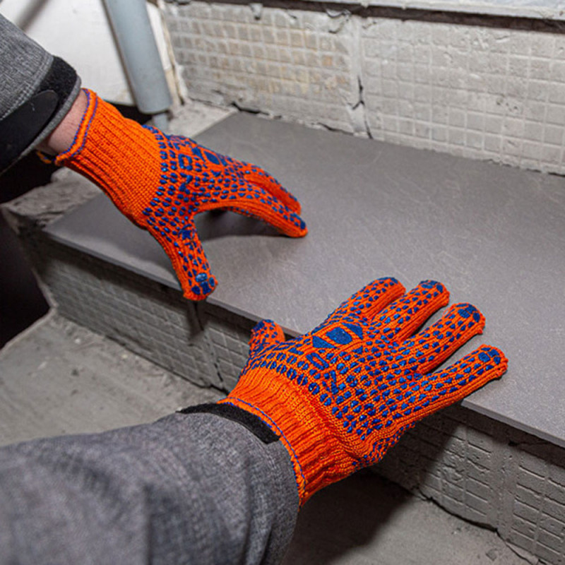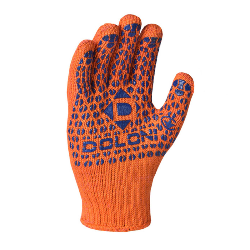 Робочі рукавички DOLONI 584 ДКГ помаранчеві із синьою точкою ПВХ (код товару: 134) призначені для виконання складних загальновиробничих і вантажно-розвантажувальних робіт. Завдяки використанню 5 ниток і 7 класу в’язання досягається висока щільність матеріалу, що забезпечує надійний захист рук від механічних впливів. Склад тканини (ХБ 40%, ПЕ 60%) поєднує міцність, довговічність і комфорт під час тривалого використання.
