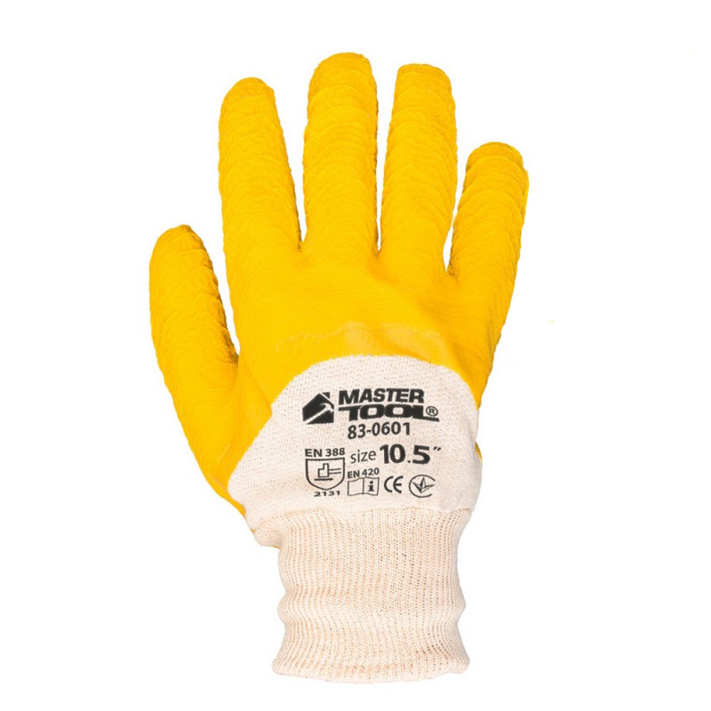Робочі рукавички скляра Mastertool з облитою долонею жовті
