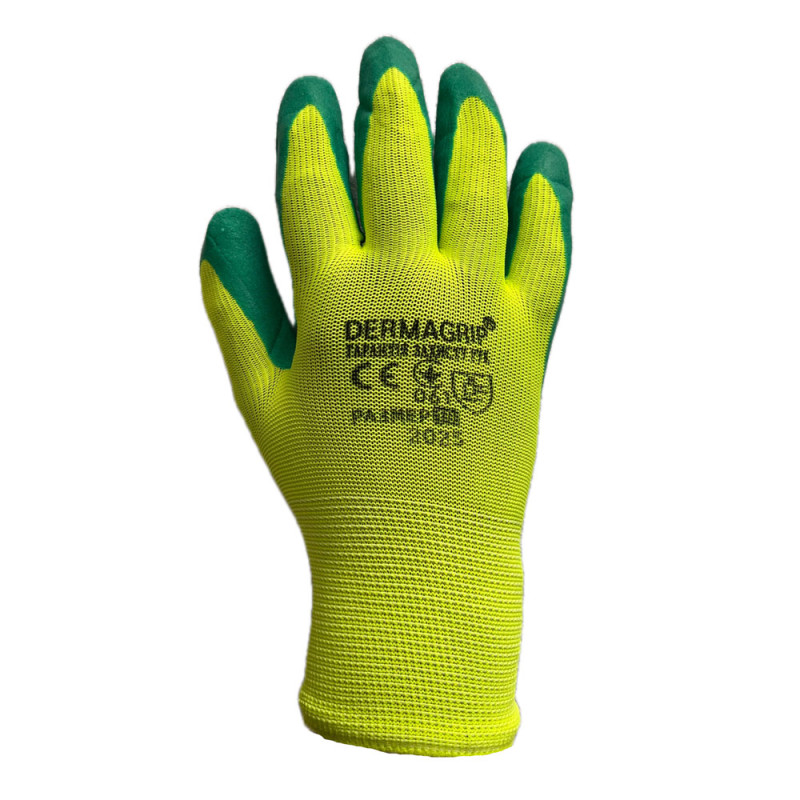 Неповне латексне покриття формує робочу зону захвату, що дозволяє ефективно працювати зі слизькими поверхнями, металом та інструментом. Латекс забезпечує відмінне зчеплення як у сухих, так і у вологих умовах. Рукавички мають захист від хімічних впливів і відповідають стандарту EN388 (3 — стирання, 2 — порізи, 4 — розриви, 1 — проколи), що підтверджує їхню зносостійкість. В’язаний манжет надійно фіксує рукавичку на зап’ясті.