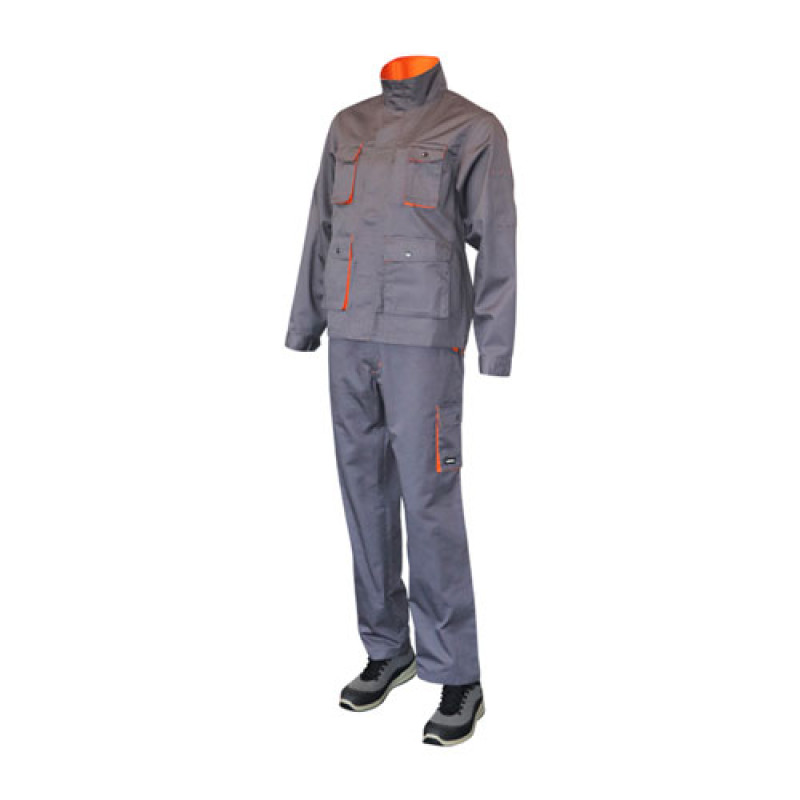 - Функциональный дизайн: Куртка оснащена четырьмя передними карманами и тремя карманами на рукаве, что обеспечивает удобное хранение инструментов и других необходимых мелочей. Воротник с планкой для защиты подбородка добавляет комфорта, а светоотражающие элементы повышают видимость и безопасность на работе.