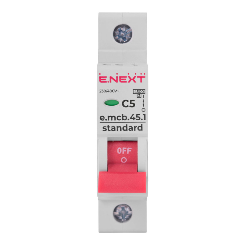 Модульный автоматический выключатель EMCB.STAND.45.1C.5 от компании E.Next предназначен для защиты однофазных электрических цепей от перегрузок и коротких замыканий. Это устройство из разряда низковольтного оборудования отличается высоким качеством и обеспечивает безопасную эксплуатацию как в домашних, так и в коммерческих условиях.