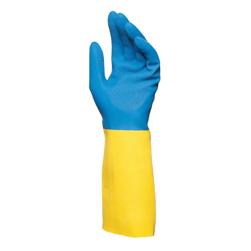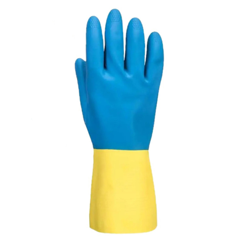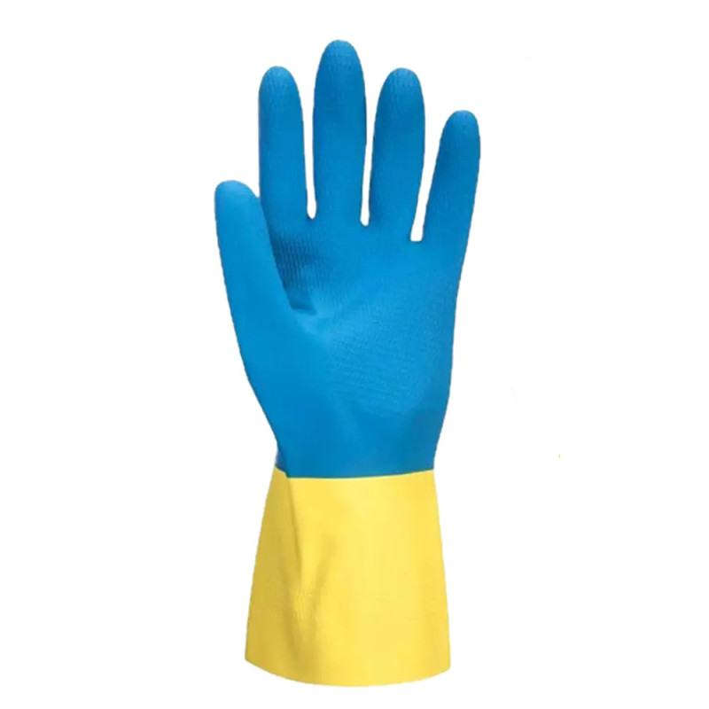 Перчатки хозяйственные латексные желто-синие р. L