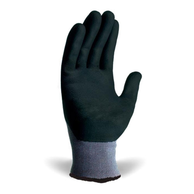 Сочетание полиэстера (80%) и спандекса (20%) в основе рабочих перчаток гарантирует их эластичность и комфорт при носке. Вязаный манжет позволяет надежно фиксировать перчатки на руке, предотвращая их сползание в процессе работы. Покрытие 3/4 вспененным нитрилом обеспечивает не только защиту, но и долговечность. Особенность вспененного покрытия заключается в его износостойкости, что значительно увеличивает срок службы перчаток.