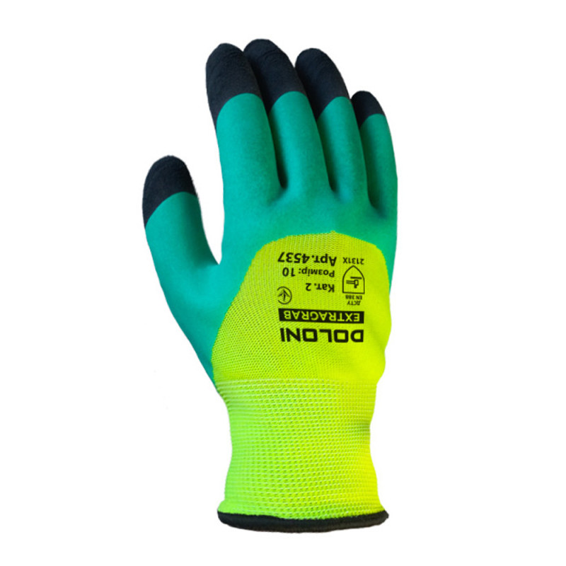 Рабочие перчатки DOLONI 4537 с двойным латексным покрытием (код товара: 7375) предназначены для выполнения работ с механическими нагрузками. Основа из полиэстера обеспечивает износостойкость и стабильную форму при использовании. Покрытие латекс и вспененный латекс формирует защитный слой, а облив 3/4 дополнительно защищает пальцы и ладонь.