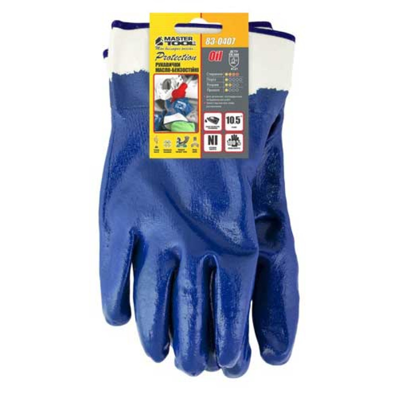 Рабочие перчатки Mastertool нитрил, синяя манжет крага 10,5 размер