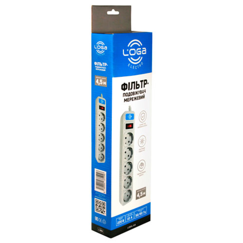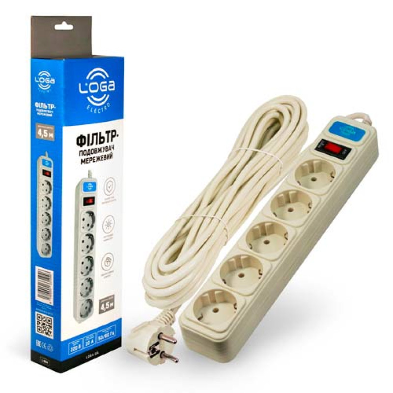 Удлинитель LOGA с сетевым фильтром 4,5 м L-904