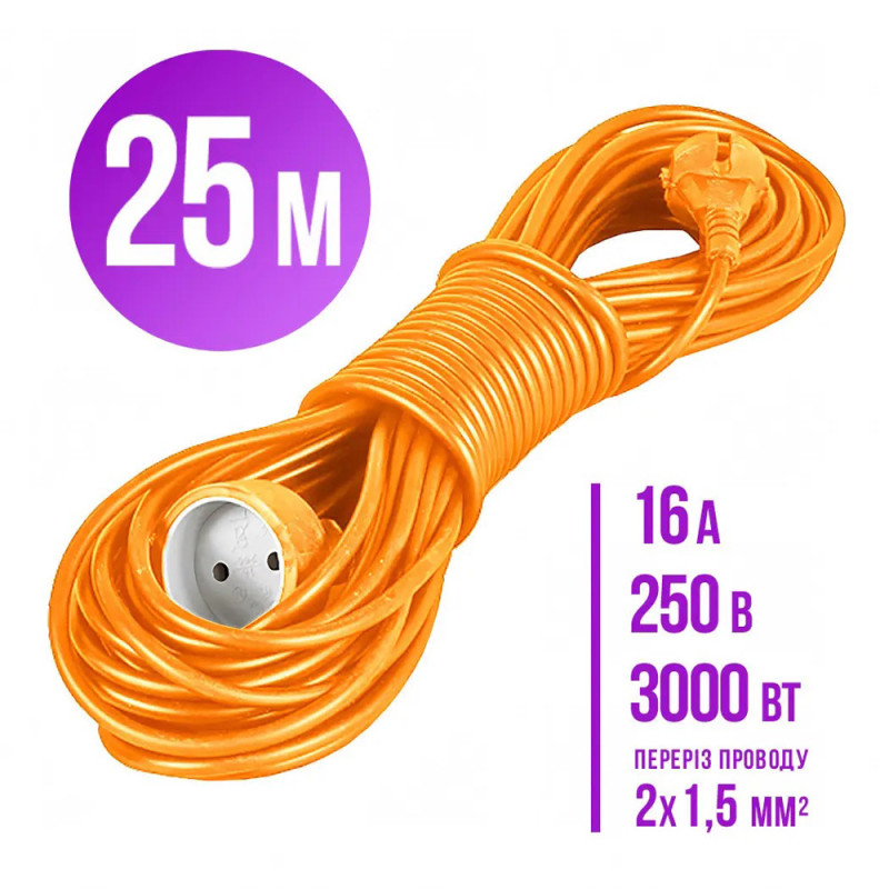 Удлинитель ПВС Папа-Мама 2*1,5 мм2 25 метров Эконом