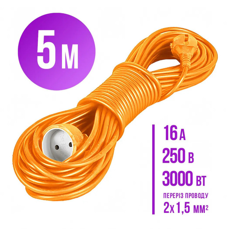 Удлинитель способен выдерживать нагрузку до 3,0 кВт благодаря использованию провода сечением 2x1,5 мм². Контактная группа выполнена из латуни, что обеспечивает долговечность соединений и устойчивость к коррозии. ПВХ покрытие кабеля защищает его от ультрафиолетового излучения, что делает удлинитель надежным как в помещении, так и на улице.