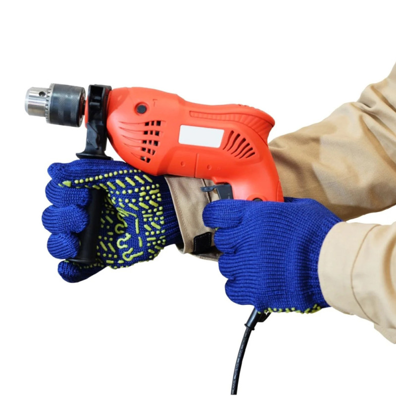ПВХ покриття у вигляді малюнка забезпечує надійне зчеплення з інструментами та поверхнями, знижуючи ризик ковзання. Рукавички ефективно захищають від ОПЗ та МВ, мають підвищену стійкість до стирання та ідеально підходять для загальновиробничих робіт, будівництва та складських задач.