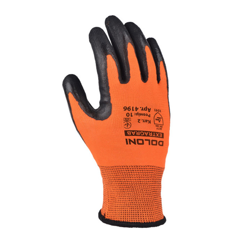 Рукавички DOLONI 4196 поліестерові з латексною обливою (код товару: 4402) призначені для робіт, де важливий контроль і надійний хват. Основа з поліестеру забезпечує еластичність і зносостійкість, а неповна обливка 3/4 захищає робочу зону руки. Рукавички відповідають стандарту EN388 (3-стирання, 2-порізи, 4-розриви, 1-проколи) і підходять для інтенсивного використання.