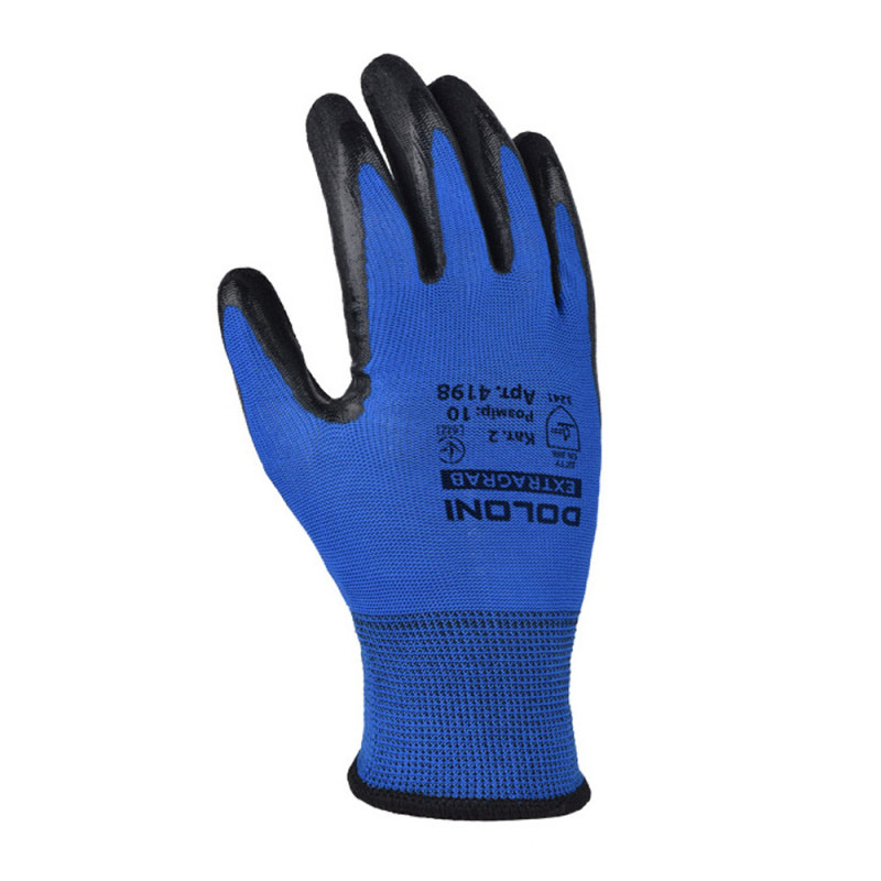 Рукавички DOLONI 4198 поліестерові з латексним покриттям, неповна облива (код товару: 4403) призначені для робіт, де важливий контроль і надійний хват. Завдяки основі з поліестеру рукавички відрізняються міцністю та еластичністю, а облив забезпечує захист основної робочої зони руки. Рукавички відповідають стандарту EN388 (3-стирання, 2-порізи, 4-розриви, 1-проколи) та розраховані на інтенсивне використання.