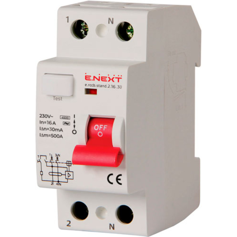 Автомат диференціального струму УЗО E.Next e.rccb.stand.2.16.30 2р, 16А, 30mA