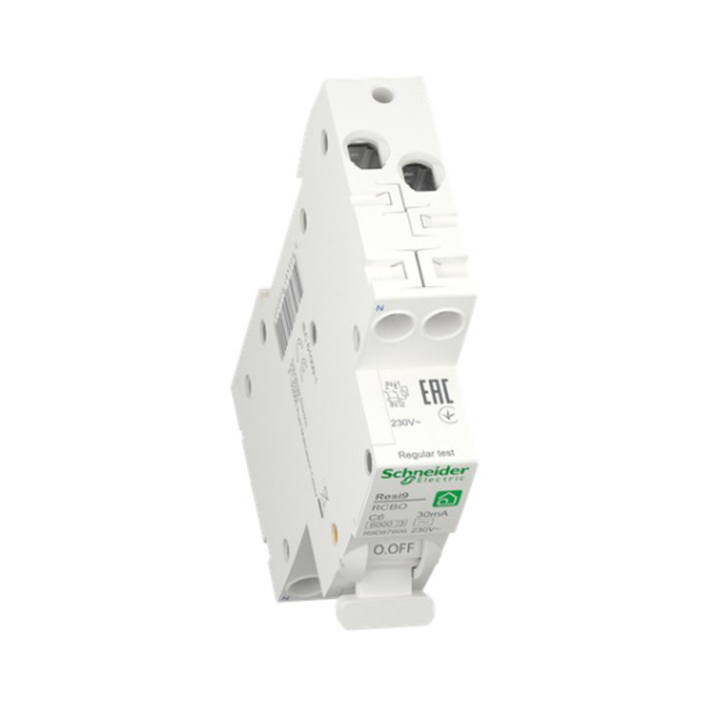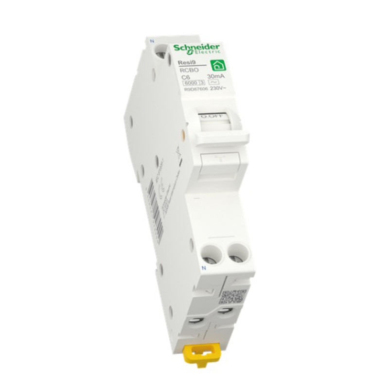 Диференціальний вимикач Schneider RESI9 1P+N із номінальним струмом 6А та чутливістю 30 мА забезпечує захист від витоків струму та перевантажень. Клас типу А та характеристика відключення C роблять його оптимальним для побутових і невеликих комерційних мереж. Компактний дизайн із нейтраллю зліва спрощує встановлення, а зносостійкість — 7500 комутаційних та 20000 механічних циклів — гарантує тривалу роботу.